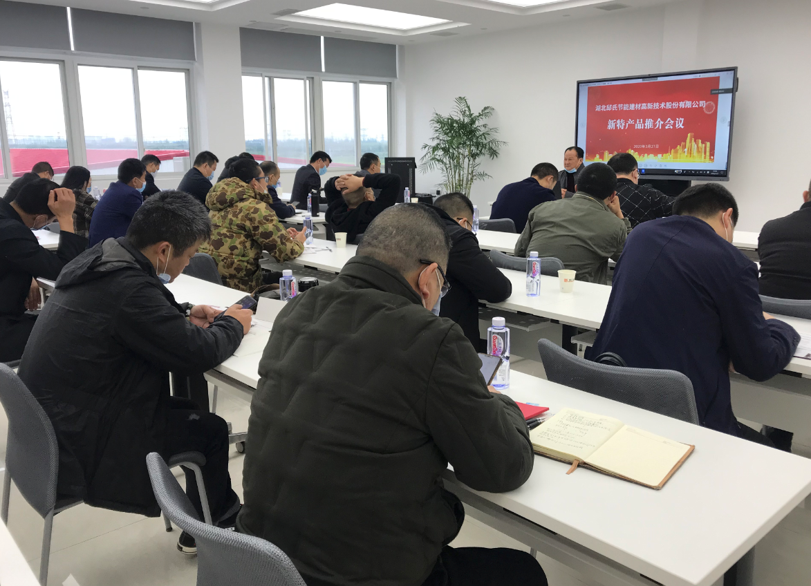 随着湖北省新冠疫情防控指挥部召开第57场新闻发布会,武汉主战场疫情扩散基本阻断,武汉市整体由高风险区降为中风险区,省内各市、州、县复工复产有序进行。邱氏高新生产基地于3月16日全面复产,复产后的车间每日加班加点进行各省市内外墙保温、涂料累积定单的生产,发送。于3月27日,应各省市场及合作伙伴项目需求,邱氏高新在总厂生产基地以视频、现场双形式会议召开了原定于2月6日举行的节能新特产品推介会议。新冠疫情防控期间,为避免参会人员过多聚集,现场会议更改为分批、多次的方式举行。邱氏高新各分公司及建筑行业人士参加了本次推介会。