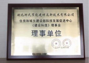 2013年9月,住房和城乡建设部科技发展促进中心《建设科技》理事会正式向湖北邱氏节能建材高新技术有限公司颁发了理事的聘书,并同时颁发我公司理事单位牌匾,这代表着我公司正式成为住房和城乡建设部