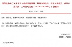 国务院办公厅近日印发《政府采购领域“整顿市场秩序、建设法规体系、促进产业发展”三年行动方案(2024—2026年)》的通知。通知要求通过支持科技创新、扶持中小企业发展、完善政府绿色采购政策等举措促进产业发展,落实国家战略。在完善政府绿色采购